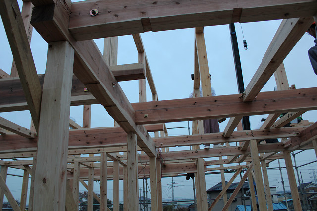 今回は手刻みでした、梁は杉材です。