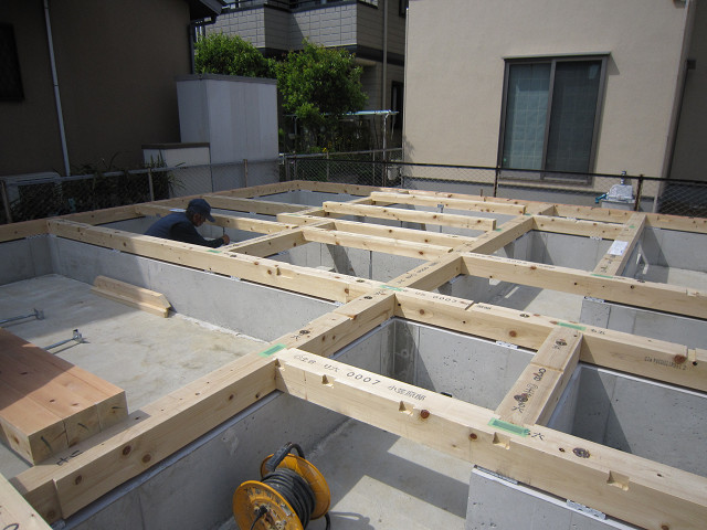 天気が良かったですねそのなかでO邸の土台敷きをしました。