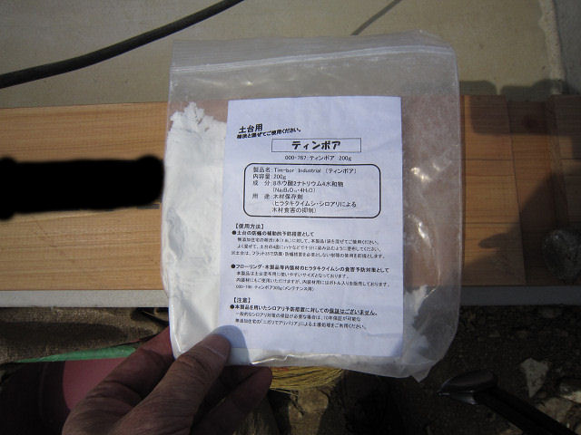 柿渋を塗ると桧の土台が少しオレンジ色になります、柿渋のくさい臭いもします。
