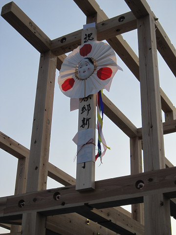 この現場も山長商店の先導モデルなので「おかめ塀串」が付けられています。