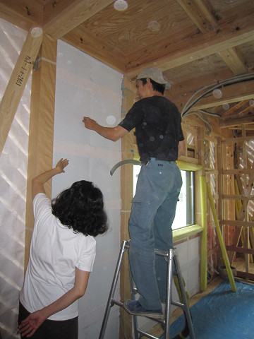 山本順三さんの出演されたビデオを見て頂きセルロースファイバーの実際の充填する所を見て頂きました。