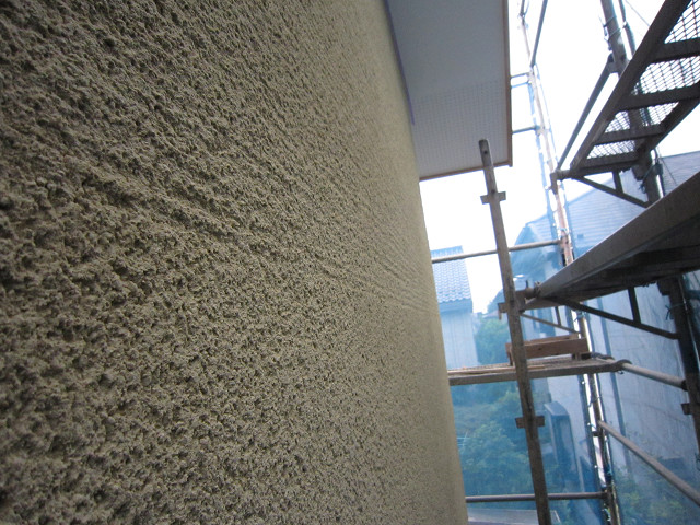 外部の「そとん壁」は終わって内部の漆喰塗りに掛かっています。