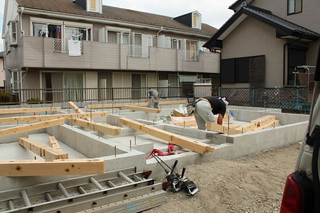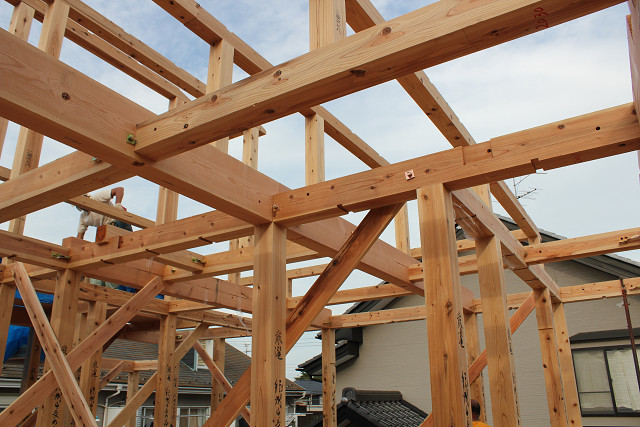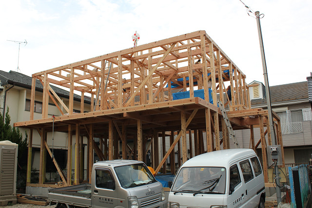 タルキが乗っていないので屋根の形がまだ分かりませんね。