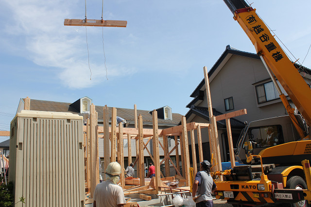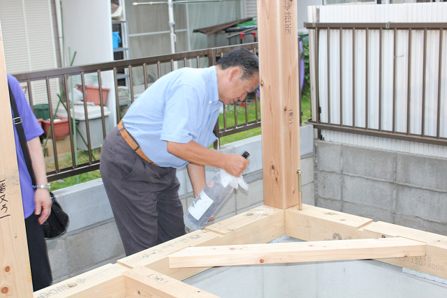 天気が良かったのですが、今後の台風を考え金物を入れています。