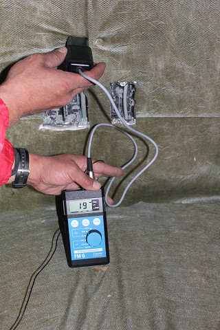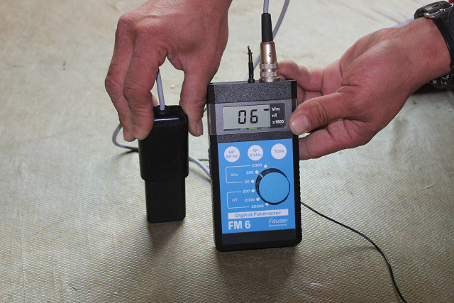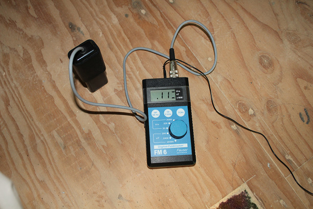 電気屋さんに建物に送電して貰い電磁波の測定をしてきました。