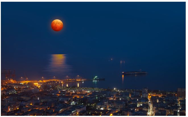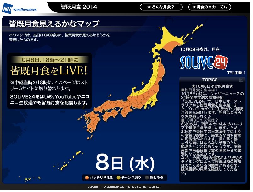 8日午後6時15分ごろに欠け始め、午後7時25分~午後8時25分ごろまで皆既食となる。
