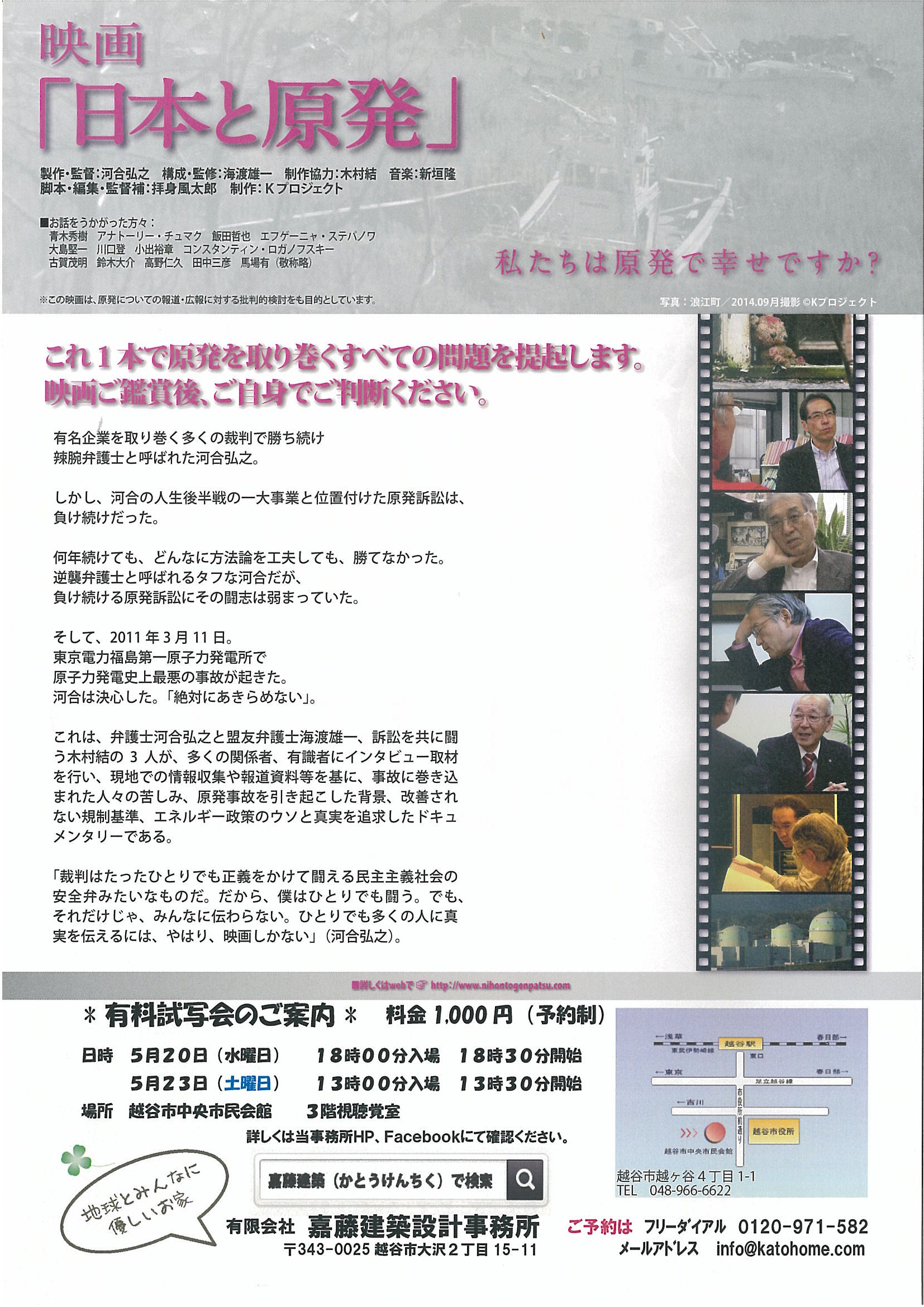 4月17日の高浜原発仮処分の弁護士さんが監督をした映画です。 証拠申請をして裁判官もこの映画を見たそうです。