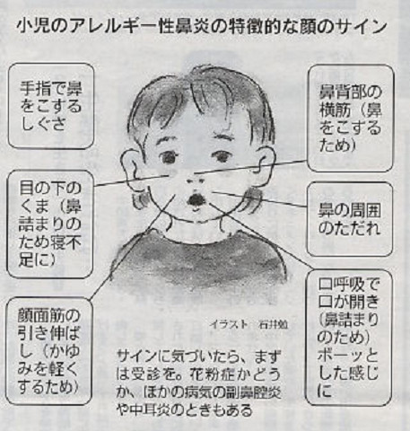 「成人で多いくしゃみは年少児では少ない。少量の鼻水で鼻詰まりを起こしやすく、口呼吸になり、いびきをかく。睡眠時無呼吸症候群の一因になることもあります」