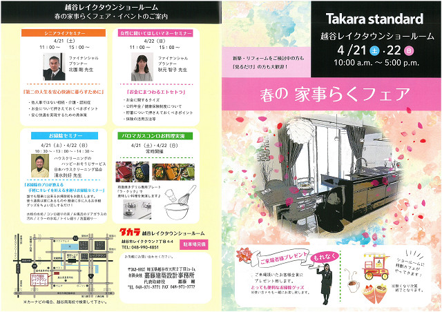 4月21日(土曜日)22日(日曜日)10時より17時タカラレイクタウンショールムにて
