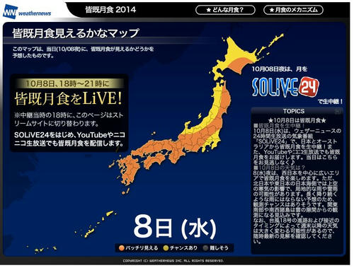 沖縄県の石垣島以西をのぞき、ほぼ全国各地で欠け始めから終わりまでの経過を見ることができる。